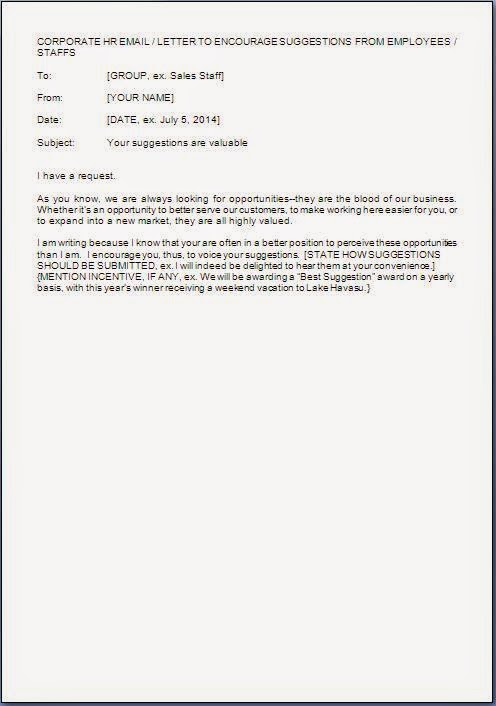 CORPORATE HR EMAIL / LETTER TO ENCOURAGE SUGGESTIONS FROM EMPLOYEES / STAFFS