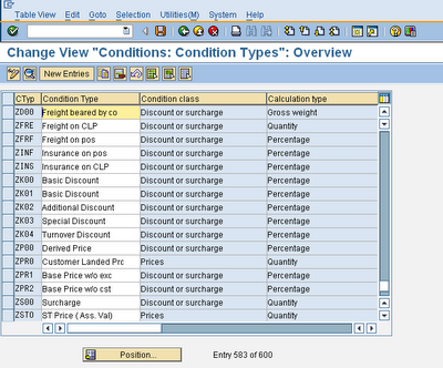 We define condition types in this step. Condition types represent Price elements in the SAP system. You specify an access sequence in every condition type. Thus, we define which fields the SAP system checks when searching for a valid condition record.