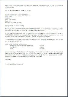 APOLOGY TO CUSTOMER FOR BILLING ERROR: CHARGED TOO MUCH, CUSTOMER COMPLAINED