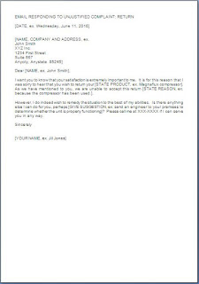 EMAIL RESPONDING TO UNJUSTIFIED COMPLAINT: RETURN