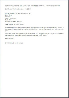CONGRATULATIONS EMAIL ON NEW PREMISES / OFFICE / SHOP / SHOWROOM