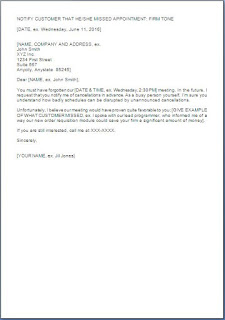NOTIFY CUSTOMER THAT HE/SHE MISSED APPOINTMENT: FIRM TONE