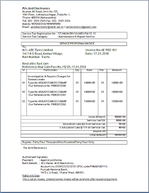 This is not an Invoice, Original Service Invoice will be send only after receipt of payment.