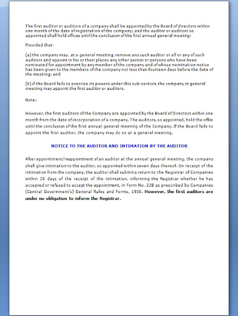 However, the first auditors of the Company are appointed by the Board of Directors within one month from the date of incorporation of a company. The auditors, so appointed, hold the office until the conclusion of the first annual general meeting of the Company. If the Board fails to appoint the first auditor, the company may do so at a general meeting.